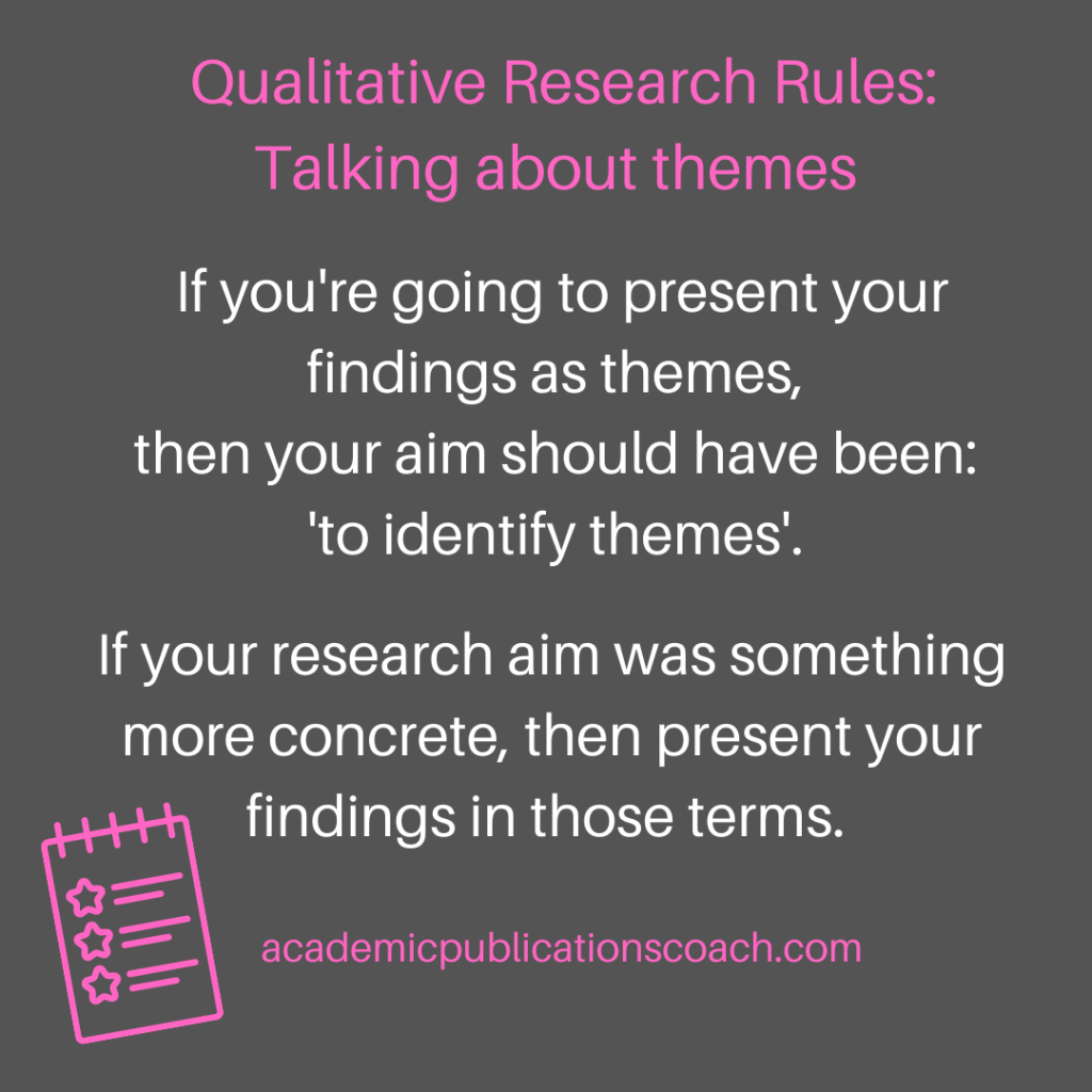 Once you can articulate the themes in the same terms as your research question (which is to add another step to your analytic project), then you can organise the order of their presentation in a way that is not only more sophisticated but much more meaningful. It is a subtle shift, but it makes a world of difference to the narrative of your paper. Moving beyond the thematic can test your ability to achieve a more concrete understanding and expression of what you really found.
